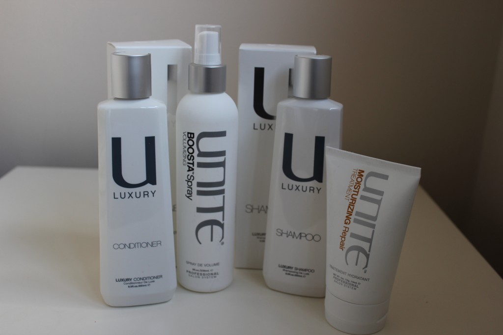 I started off with a quick shampoo using the ‘UNITE Luxury Shampoo’ it left a gorgeous baby powdery smell. This product is sulfate and paraben free with a blend of Crushed Pearl, Hawaiian White Honey and Pure Argam Oil. It created a rich lather that replenished my very dry hair and the great part of this product is it works on all hair types.